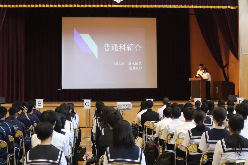 はじめに各部活の大会結果報告と表彰がありました。その後、全道大会に出場するハンドボール部、卓球部、弓道部、空手道、バドミントン部、陸上部、支部大会に出場する野球部が決意表明をしました。
