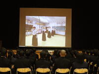 生徒会から学校行事の説明、その後各学科の紹介では代表者が学科の特徴などをスクリーンを活用しながらの説明、部活動紹介では各部活動がそれぞれの部が趣向を凝らした紹介をしました。