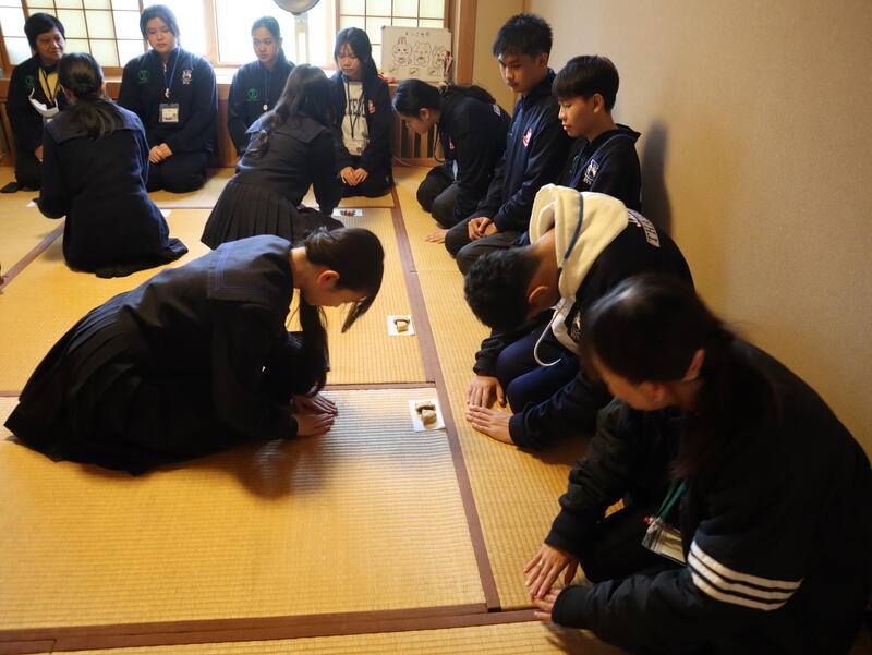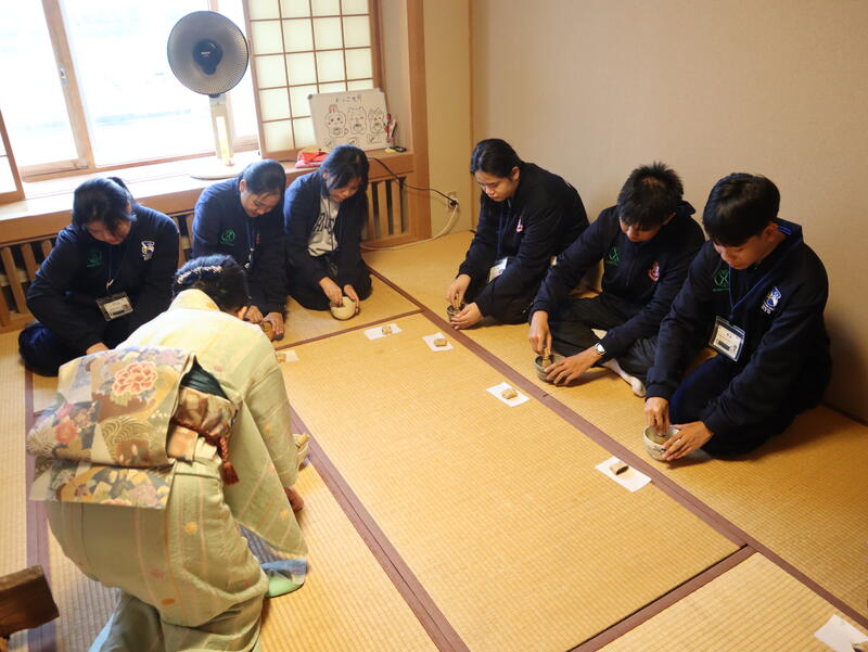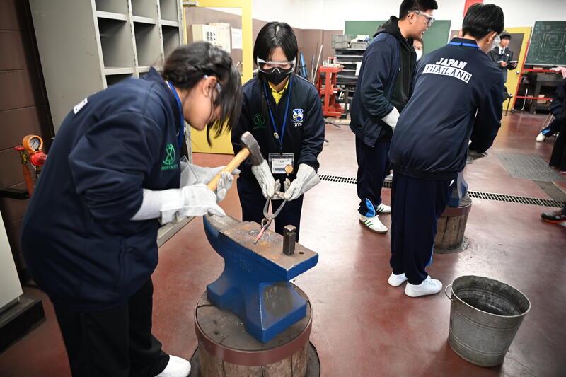 タイからの短期留学生のみなさんは、本日は午前中に音楽や体育の授業を1年生のクラスと一緒に受け、午後から茶道体験や電子機械科で旋盤、溶接、鋳造体験をしました。その後、タイとのオンライン交流では2日間の近況報告などをして、2日目が終了しました。